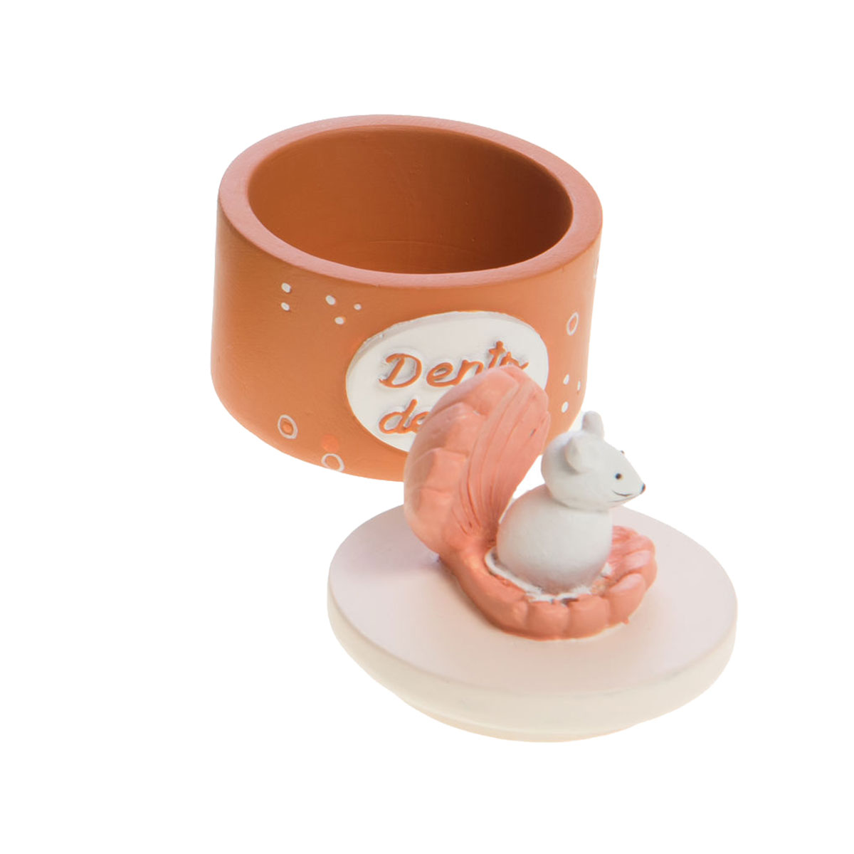 Little Tooth Box Mouse in Shell - Ochre Orangematerial: Resindimensions: Height 4 cm × Diameter 5 cmThis cute tooth box features a mouse nestled in an ochre orange shell. A warm and original design for a precious childhood memory, while adding a vibrant touch of color to your child's room.