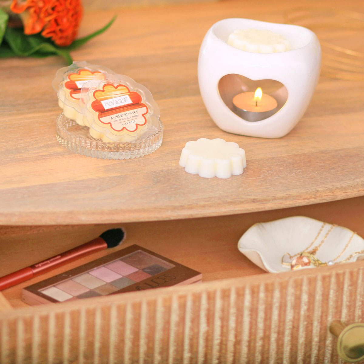 Amber Sunset Wax Melt 26 g – Neroli, Sweet Amber & Orange Zest – Soy Wax Melt – Heart & Home