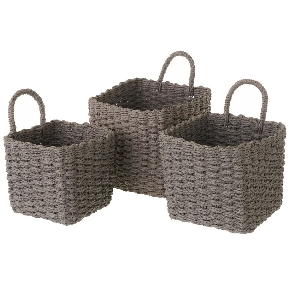 Set of 3 braided paper fiber basketsDimensions:The large one: Height 18 cm (excluding handle) - Width 20 cm - Depth 20 cmAverage: Height 15 cm (excluding handle) - Width 19 cm - Depth 19 cmLa Petite: Height 14 cm (excluding handle) - Width 16 cm - Depth 16 cm