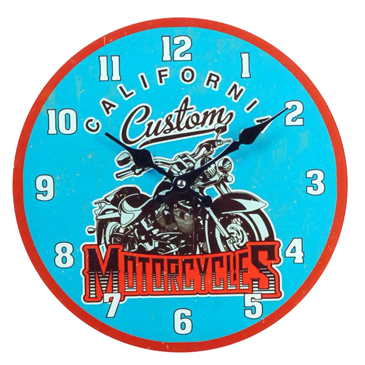 California Custom glass clock 30 cmGlassBlueDimensions:Diameter 30 cm - Depth 2 cmWorks with a LR6 battery not includedFor lovers of the USA and the legendary Route 66.