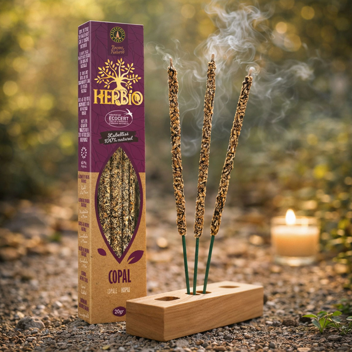 Herbio Copal smudge incense creates a pure and calming atmosphere ideal for cleansing spaces.