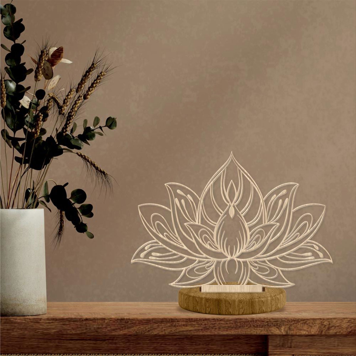 Decorative Lotus Flower in Wood – Zen and Minimalist StyleBring a touch of serenity to your home with this elegant wooden lotus flower, delicately cut and placed on a round base made of darker wood. Its minimalist and poetic design makes it a natural decorative object, perfect for creating a calm and peaceful atmosphere in any room.Features: Manufacturer: STC Material: Light wood (flower) and dark wood (base) Dimensions: Height 22 cm x Width 25 cm Style: Zen, minimalist Color: Natural light and dark wood tonesUse: Perfect for a shelf, an entryway table, a meditation corner, or a bedroom. Complements feng shui interiors and wellness spaces.Gift Idea: A thoughtful wellness gift for lovers of spiritual decor, meditation enthusiasts, or anyone seeking a soothing and harmonious environment.