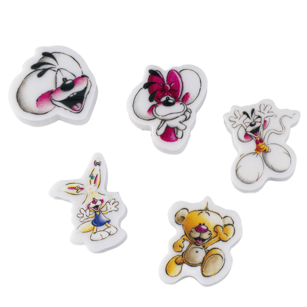 Diddl 5 Erasers Set – Premium Quality • 5 character erasers featuring Diddl, Diddlina, Pimboli and friends • Soft and effective non-toxic rubber • Varied shapes with detailed illustrations • Box size: H 22 cm × W 6 cm × D 1.5 cm • Average eraser size: H 4 cm × W 3 cm × D 1 cm • Official Diddl is Back collection