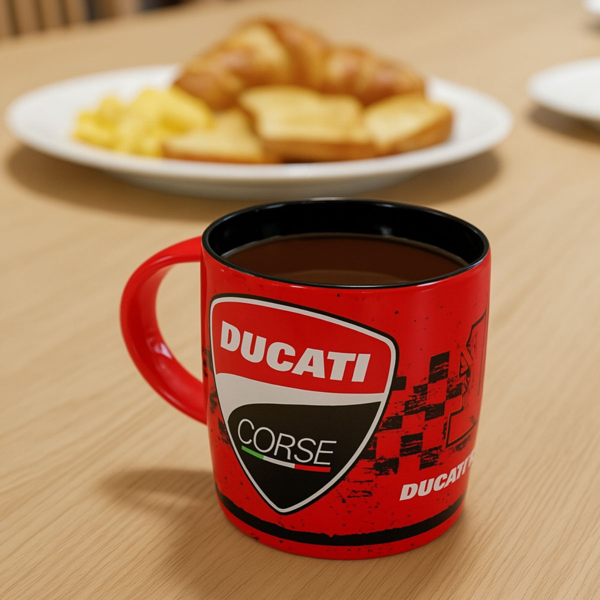 Ducati Corse Mug – Nostalgic-Art – 340 mlExperience Ducati’s racing spirit with this bold red mug featuring the official design of the legendary Italian motorcycle brand.- Official Ducati Corse license- Manufacturer: Nostalgic-Art- Premium ceramic- Capacity 340 ml- Size: 9 × 8.5 cm- Racing red exterior – black interior- Microwave and dishwasher safe