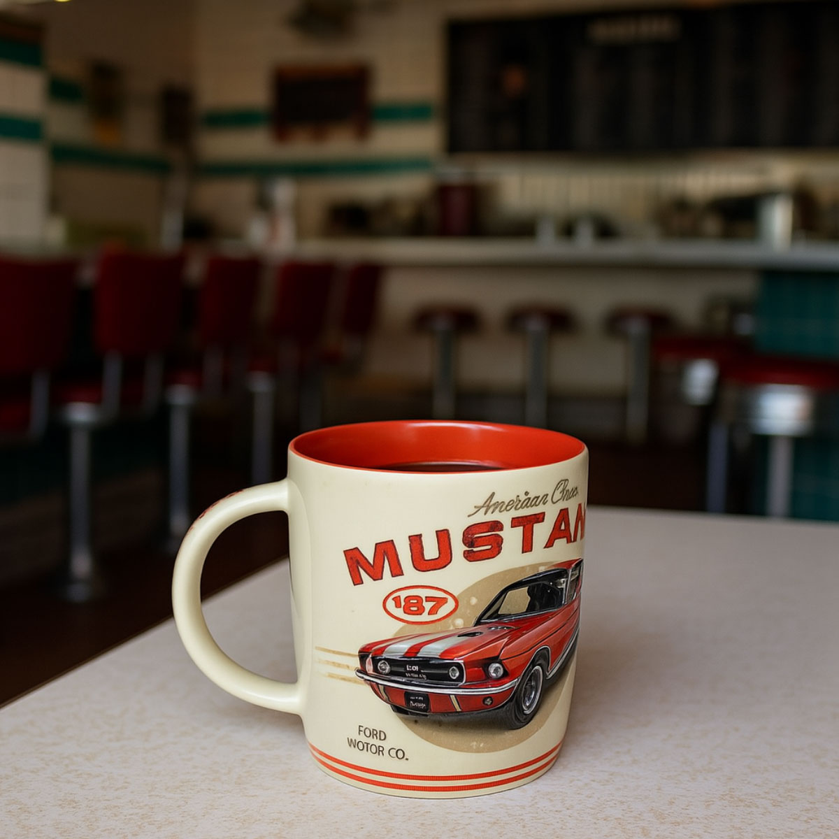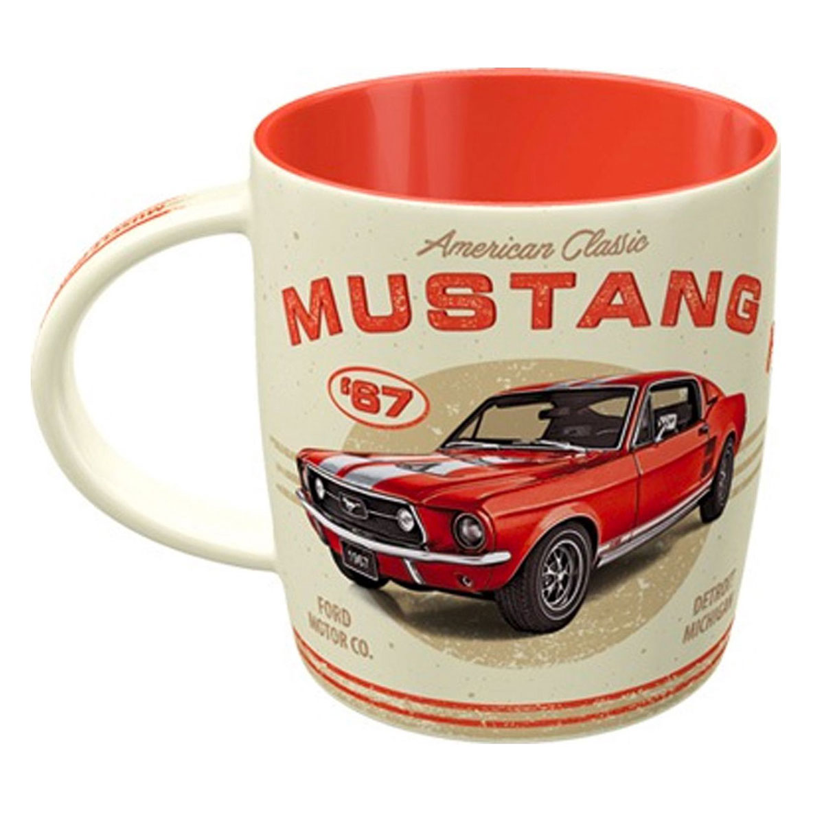 Ford Mustang 1967 Mug – Nostalgic-Art – 340 mlImmerse yourself in the authentic spirit of American classic cars with this Ford Mustang 1967 mug featuring a timeless vintage design.- Official Ford Mustang license- Manufacturer: Nostalgic-Art- Premium ceramic- Capacity 340 ml- Size: 9 × 8.5 cm- Red vintage-style interior- Microwave and dishwasher safe