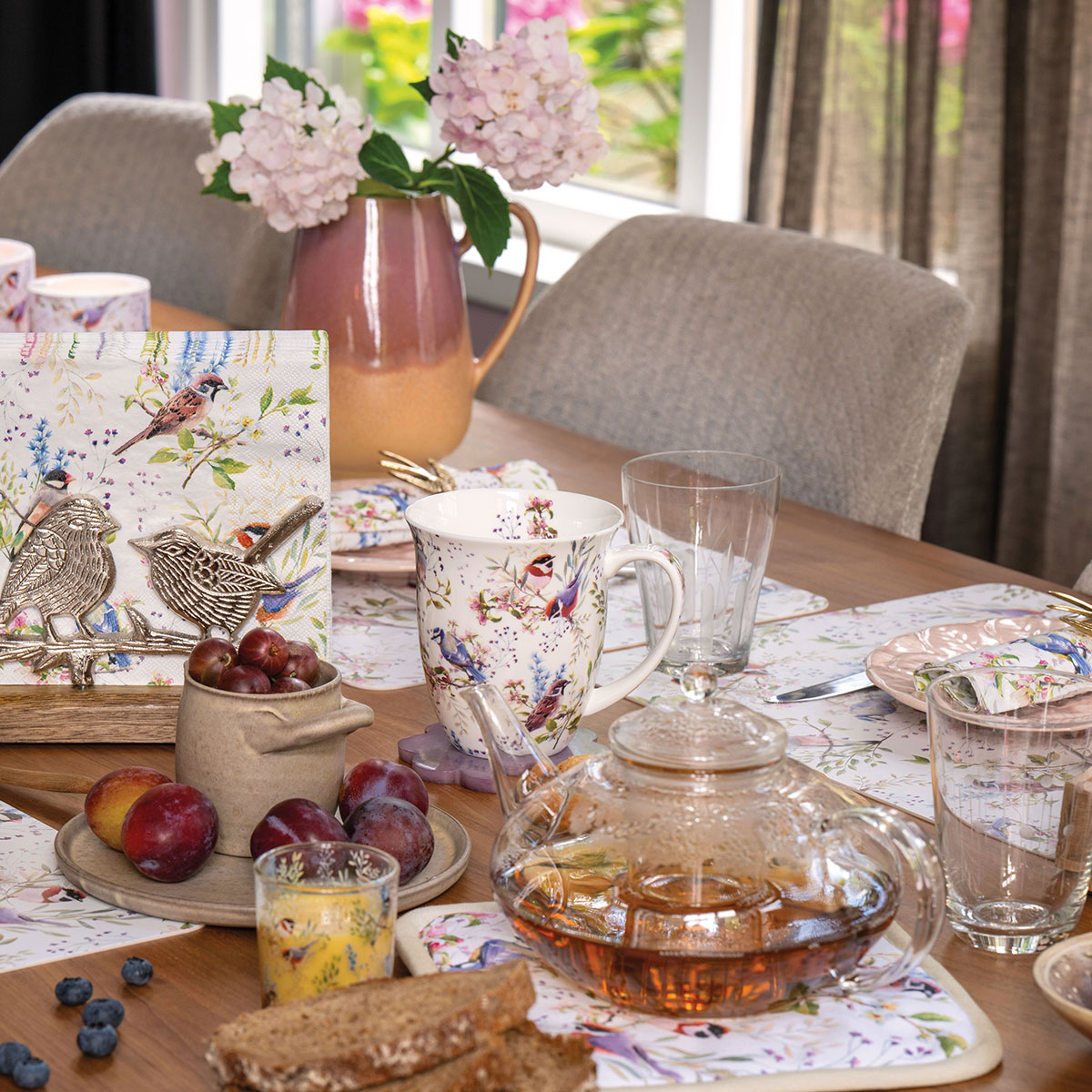 Garden birds fine porcelain mug 400 ml – Ambiente• Delicate illustration of garden birds and spring flowers • Made of fine porcelain with a soft, smooth finish • Size: height 11 cm – diameter 10 cm – capacity 0.4 L • Perfect for enjoying tea, coffee or herbal drinks • Elegant gift for nature and bird lovers