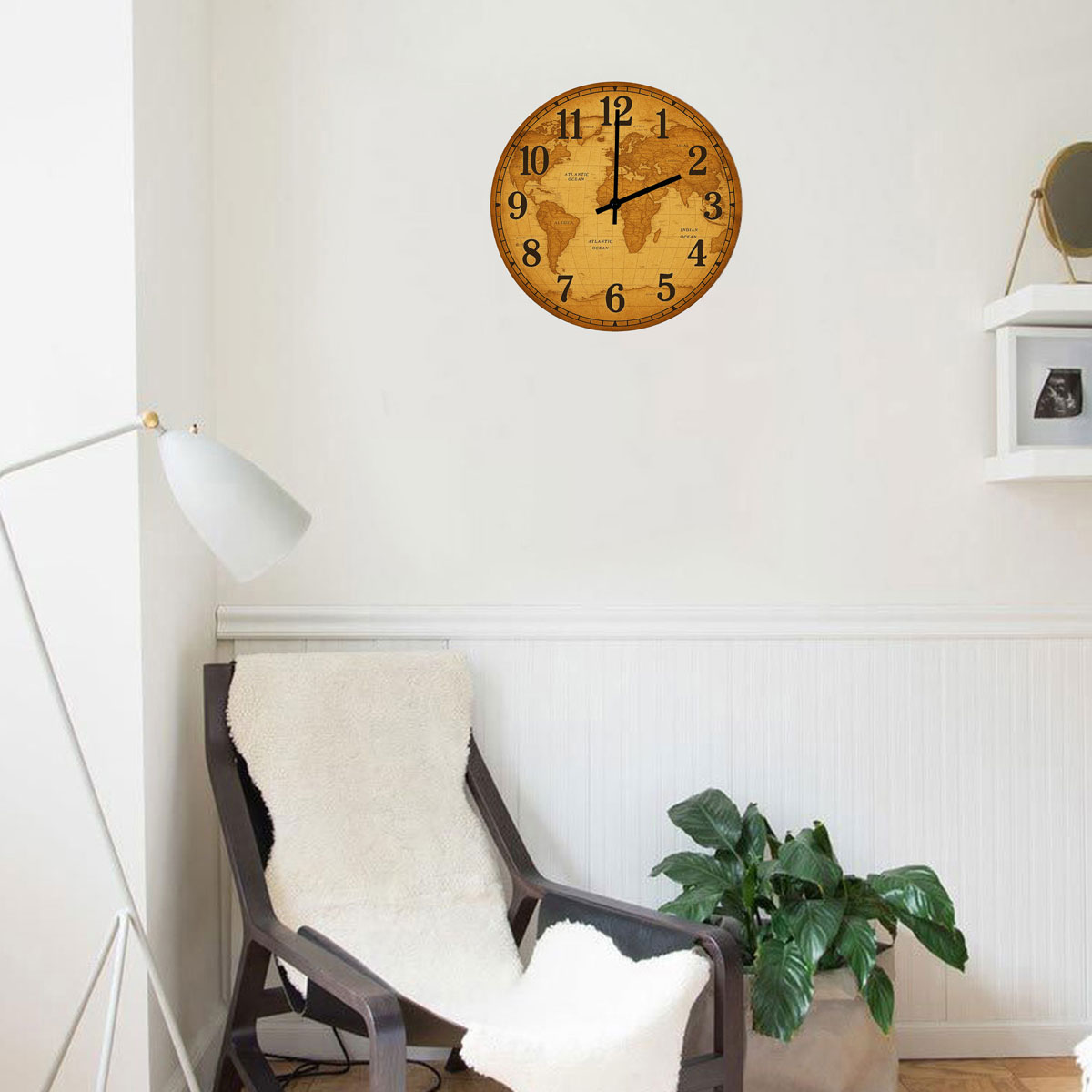Glass Wall Clock – Antique World Map – 29 cm Material: Glass Dimensions: Diameter 29 cm x Depth 4 cm Mechanism: Operates with one LR6 battery (not included) Manufacturing: Printed in France Add a touch of vintage elegance to your interior with this glass wall clock featuring an antique world map design. Its sepia tones and old-style cartography evoke great explorations and a love of travel. With its 29 cm diameter, refined finish, and contrasting black hands, it combines aesthetic appeal with practicality. Ideal for an office, living room, or library, this decorative clock will charm geography lovers, history enthusiasts, or anyone who appreciates timeless decor.