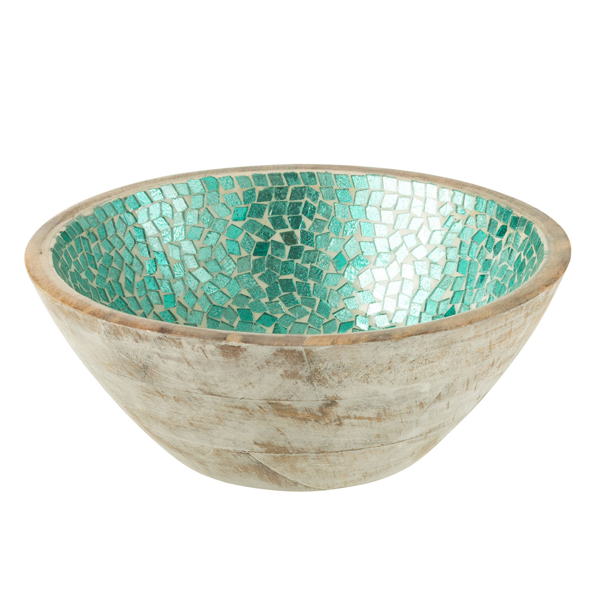 Green mosaic mango wood salad bowlThis mango wood salad bowl features a beautiful green mosaic interior, combining natural charm and artisanal elegance to enhance your table setting.• Refined artisanal design • Green mosaic interior decoration • Natural and warm mango wood • Perfect for salads, fruits or decorative dishes • Dimensions: 23 x 10 cm – Hand wash recommended