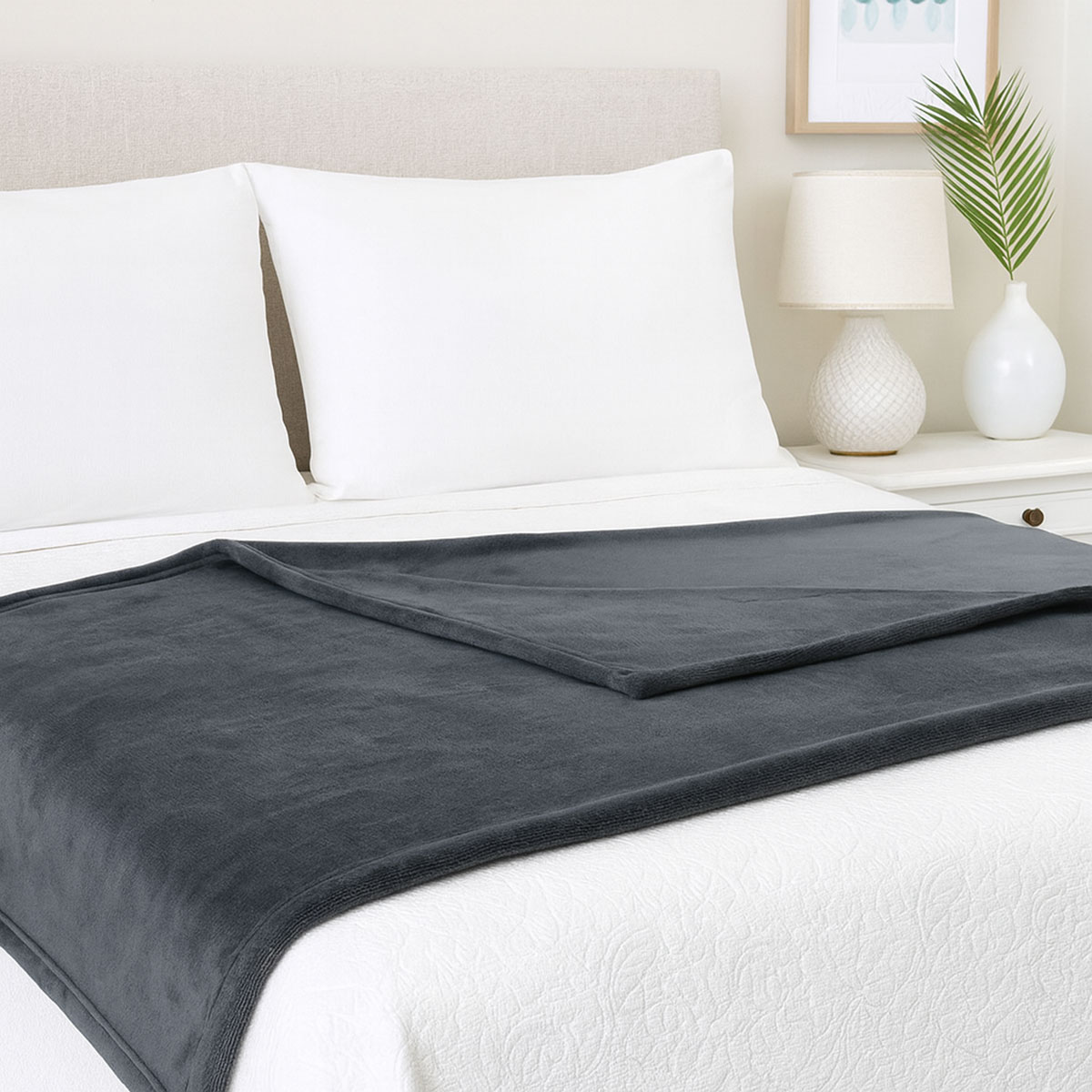 Grey fleece throw blanket 130 × 160 cmThis grey fleece throw blanket is a must-have for creating a cozy atmosphere at home. Its soft and enveloping texture makes it the perfect companion for your relaxing moments, whether on the sofa or in the bedroom. Lightweight and practical, it is suitable for all seasons.Features:• Dimensions: 130 × 160 cm• Material: 100% polyester