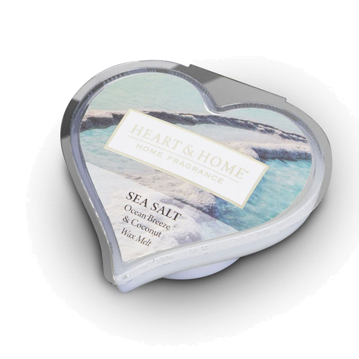 Heart and Home Sea Salt Melting Pebble - 12 hoursScent: Sea Breeze, Salty Driftwood, and CoconutTop Notes: Fresh Breath of AirHeart Notes: Coconut WaterBase Notes: Marine WoodBurn Time: Up to 12 hoursWax Weight: 26 gComposition: Soy WaxDimensions: Height 1.5 cm - Width 6 cm - Depth 6 cmImmerse yourself in the soothing essence of Sea Breeze, Salty Driftwood, and the sweetness of coconut with this beautiful scented melting pebble. The top notes evoke a Fresh Breath of Air, while the heart notes captivate with Coconut Water, and the base notes warm the atmosphere with Marine Wood.