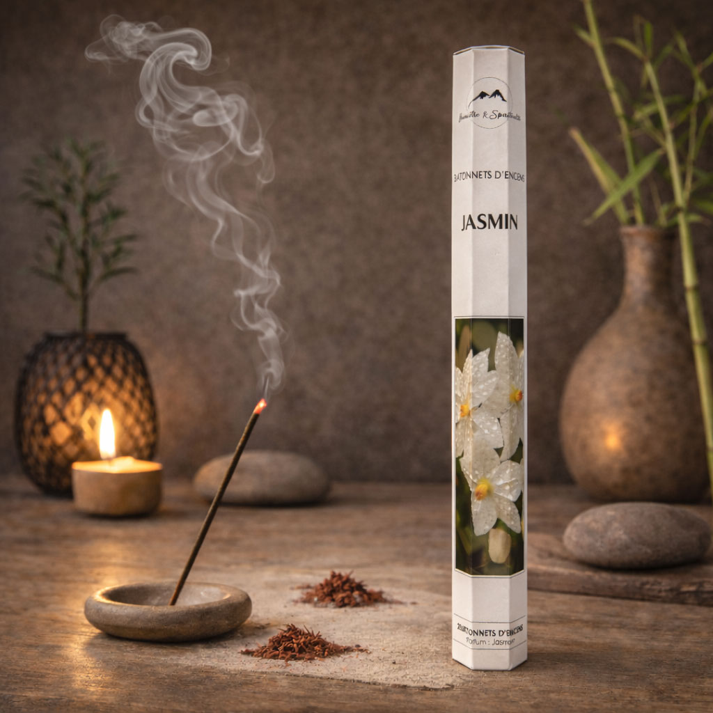 Jasmine Incense Sticks – Attracts Love and Money – Prophetic Dreams, Prosperity and Intuition – Box of 20• Delicate jasmine floral fragrance promoting love, harmony and abundance• Supports intuition and encourages prophetic dreams• Ideal for prosperity rituals, meditation and relaxation moments• Box dimensions: height 24 cm – width 3 cm – depth 3 cm• Natural composition: bamboo stick, charcoal powder, natural wood powder (A1 grade), natural joss / jicat glue, natural kupam fixative, non-toxic fragranceThese jasmine incense sticks release a soft and enchanting floral scent that supports love, prosperity and intuitive awareness. Perfect for spiritual rituals, meditation sessions or creating a peaceful atmosphere at home.