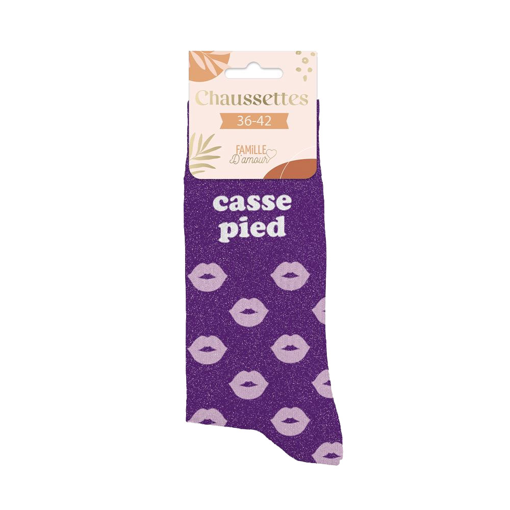A pair of sparkling Casse Pied socks color: purple and lavender material: 55% cotton, 32% polyester, 11% metallic fiber size: One size (36-42) Add a touch of glittering elegance to your outfits with these sparkling socks! Perfect for parties or brightening up your days, they combine style, comfort, and originality.