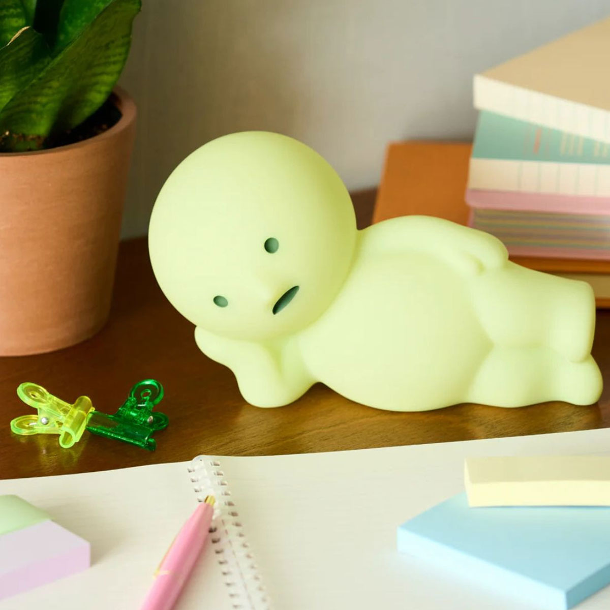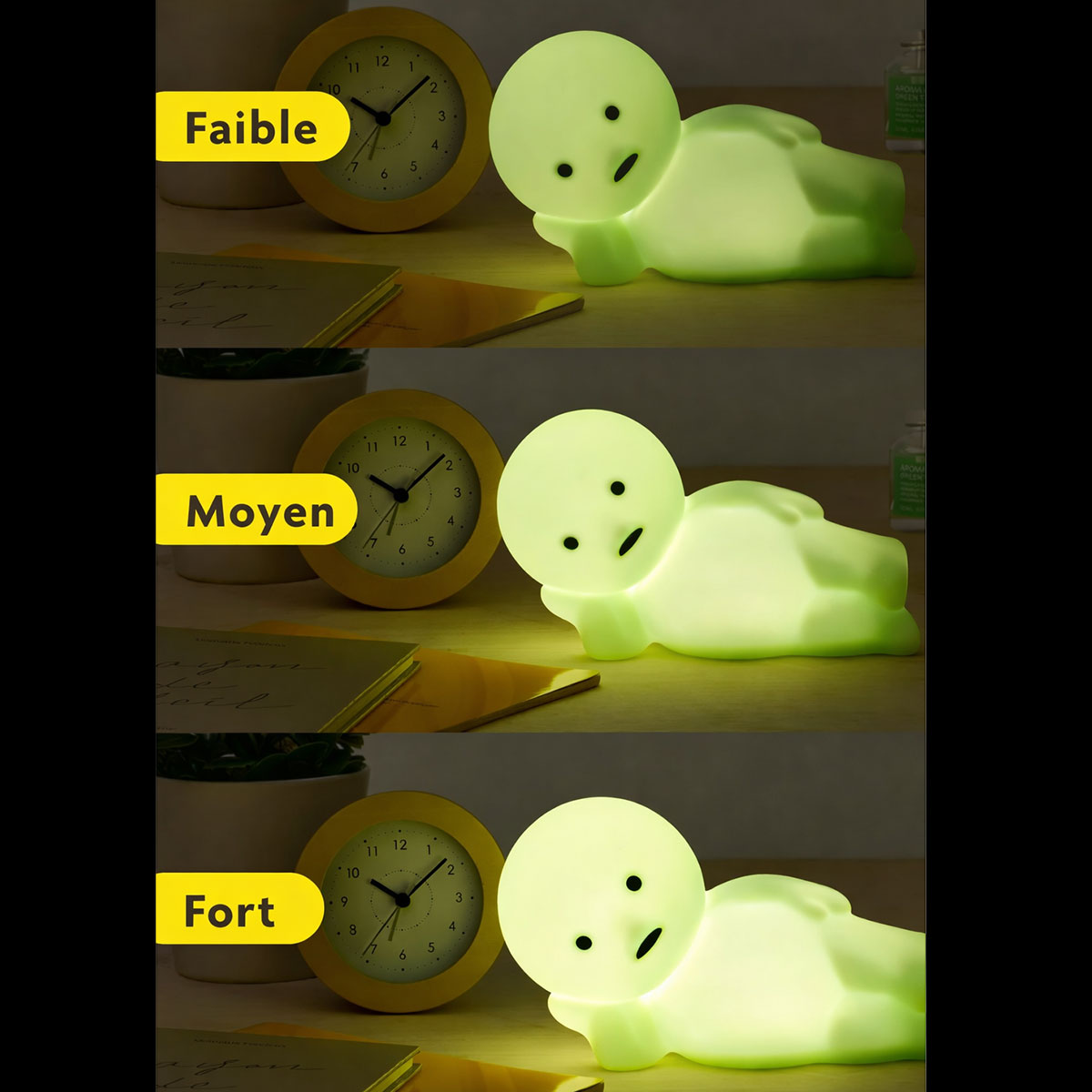 Smiski Lounging touch lamp – Rechargeable LED night light – 18 cm• Touch lamp featuring the Smiski character in a relaxing pose• Size height 10 cm × length 18 cm × depth 7.5 cm• Made from high quality silicone with a soft and durable finish• Soft LED light with adjustable brightness for a calming atmosphere• Rechargeable 900 mAh battery providing up to 8 h bright light or 32 h low lightThe Smiski Lounging touch lamp emits a gentle LED glow, perfect for creating a cosy and relaxing ambiance. Crafted from soft, high quality silicone, it feels pleasant to the touch and is ideal for bedrooms or quiet spaces. Fully rechargeable in just 4 hours via DC 5V 1A input, it combines energy efficiency with long battery life thanks to its 1.8 W power. A charming and practical decorative light for Smiski fans.smiski lamp touch lamp rechargeable led night light smiski lounging 18cm decorative giftAttention, only one figurine is included per box, for a surprise with every opening!