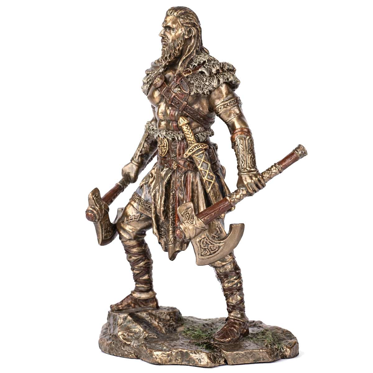 Viking Warrior with double axes figurine – bronze effect resin – 15.5 cm – Parastone• Decorative figurine depicting a powerful Viking warrior holding two axes• Antique bronze effect finish for an authentic look• Published by Parastone, known for artistic decorative reproductions• Material: durable resin with metallic effect• Dimensions: height 15.5 cm × width 10 cm × depth 8 cmThis Viking warrior figurine embodies strength and Nordic mythology. A striking decorative piece perfect for shelves, desks or historical figurine collections.