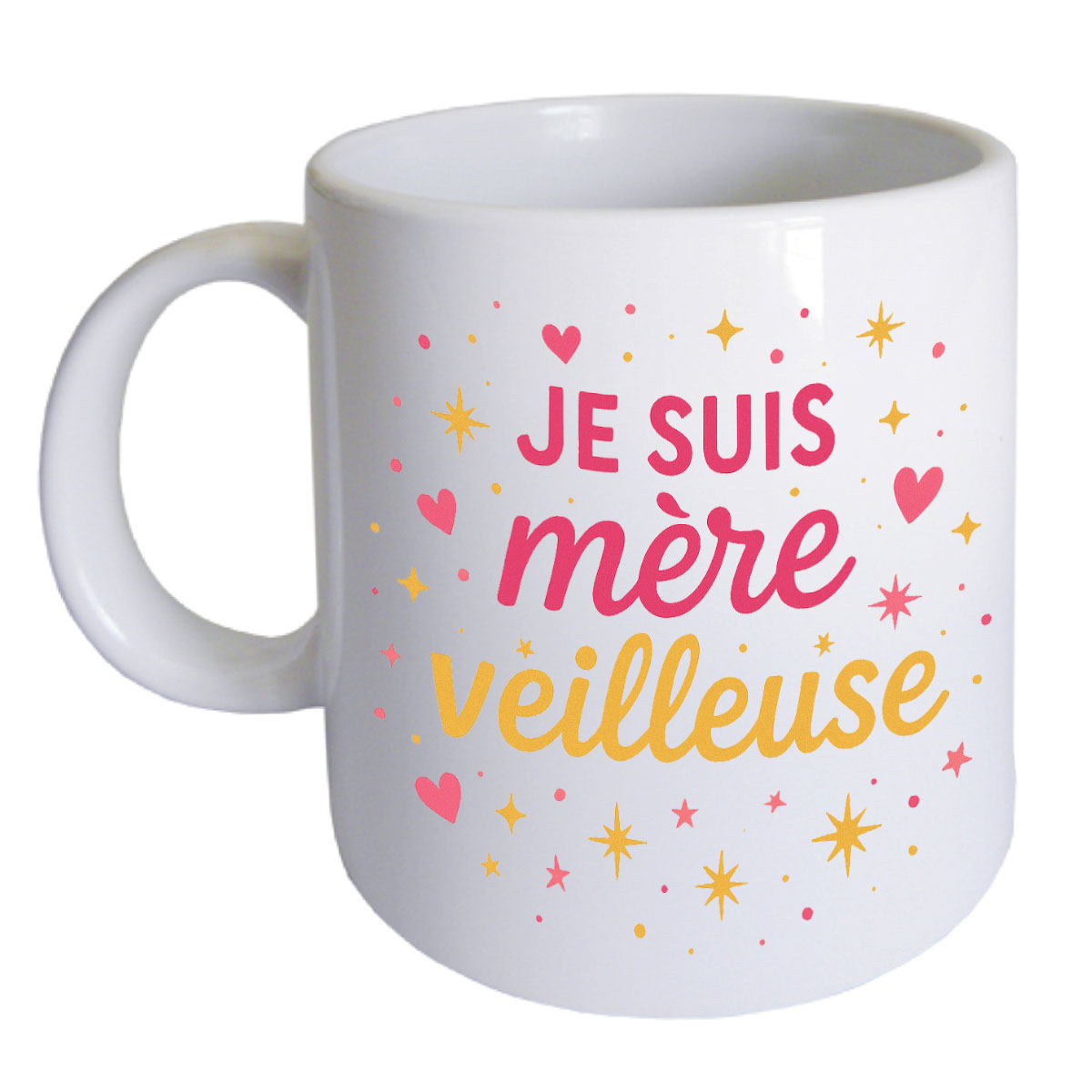 Mug “I’m a Wonderful Mom” – CBKréation – 325 ml A tender and joyful mug for all the amazing moms. With the cheerful message “Je suis mère veilleuse” (“I’m a wonderful mom”), it’s a daily reminder of love and care. Printed in France on high-quality ceramic. • Brand: CBKréation • Material: Ceramic • Size: Height 9.5 cm – Diameter 8.2 cm • Capacity: About 325 ml • Printed in France • Perfect Mother’s Day or birthday gift