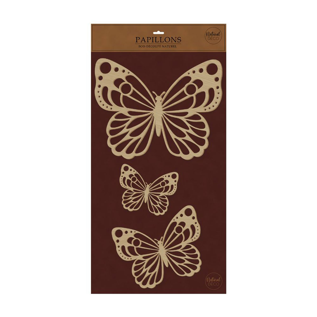 Bring a light and poetic touch to your interior with this set of three wooden butterfly wall decorations.