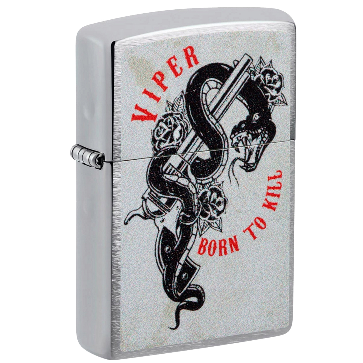 Zippo Lighter Viper Born to KillGenuine Zippo lighter made in the USA - Refillable - Delivered empty - Lifetime warrantyDelivered in gift boxSize: 5.5 x 3.6 x 1 cmZippo lighters are guaranteed for life.